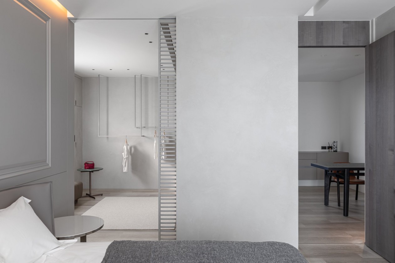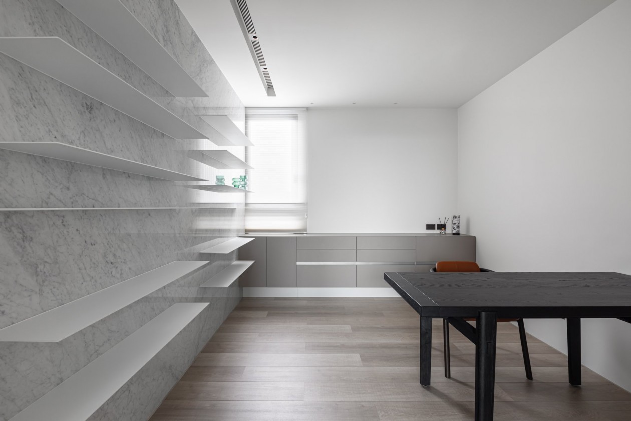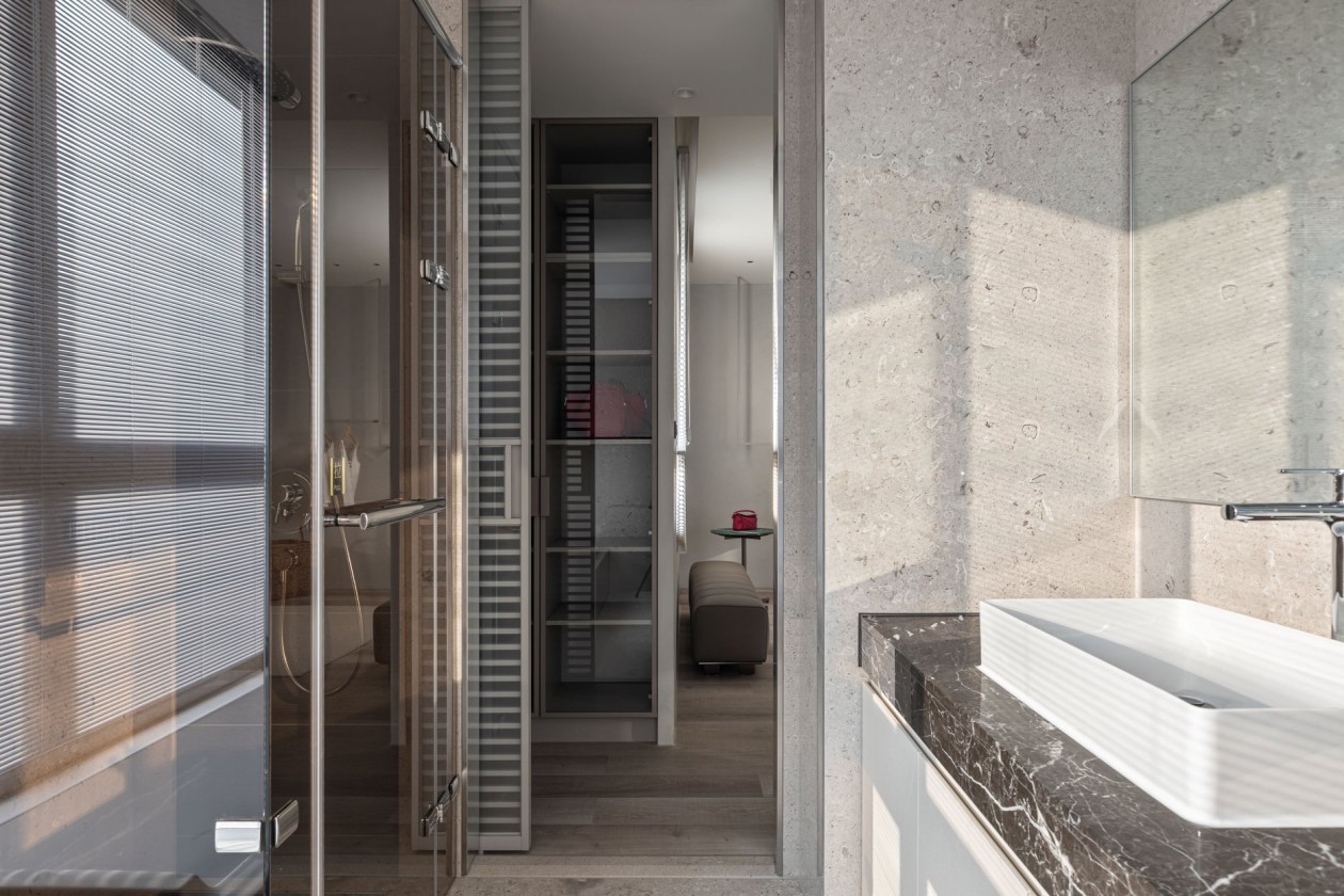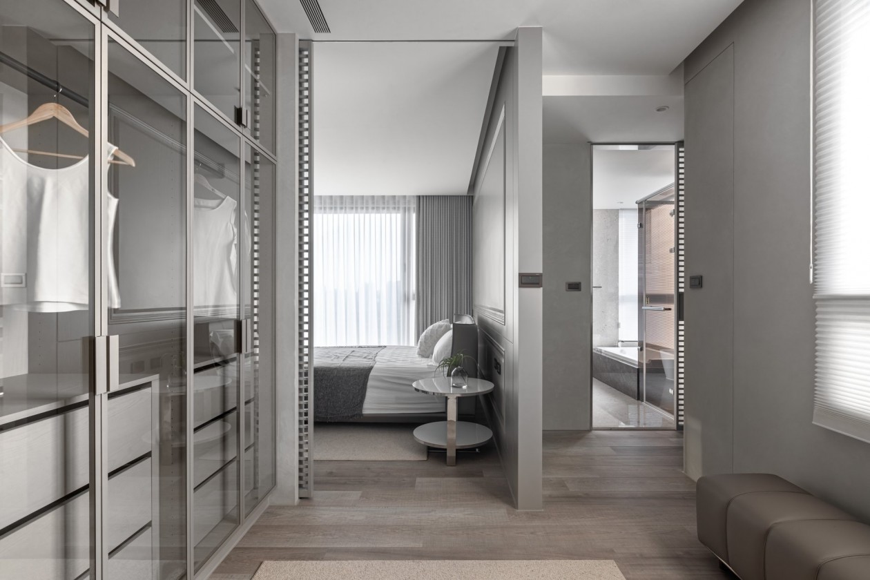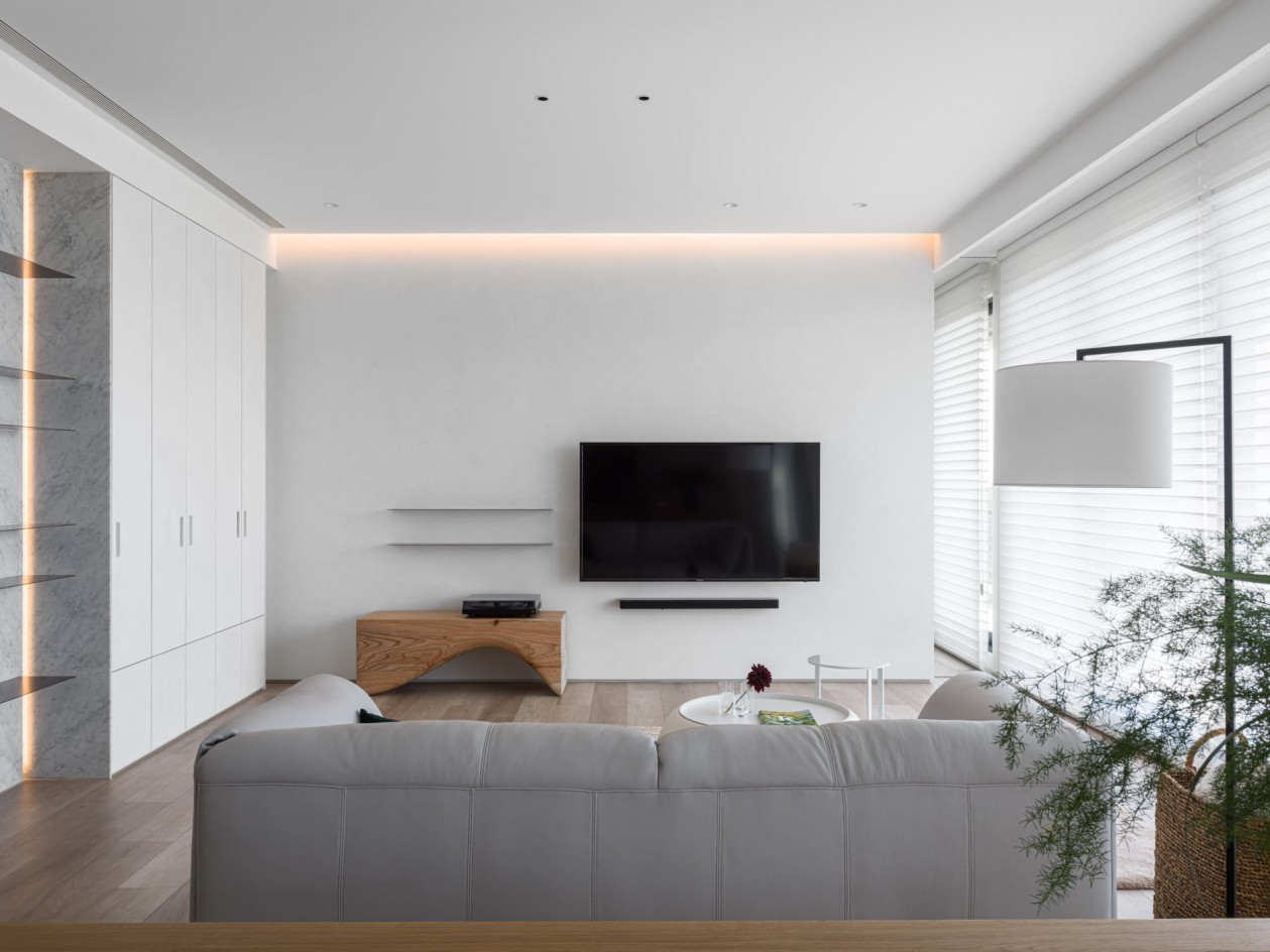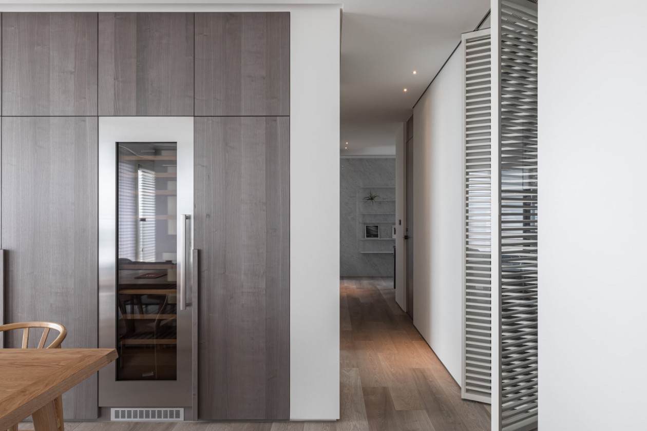 四季的腳步不疾不徐地透過水岸景色佇立在窗臺前,自水岸漫上無限輕柔與自在,透過大面落地窗在漫白的屋里鋪陳各式生活的面向。